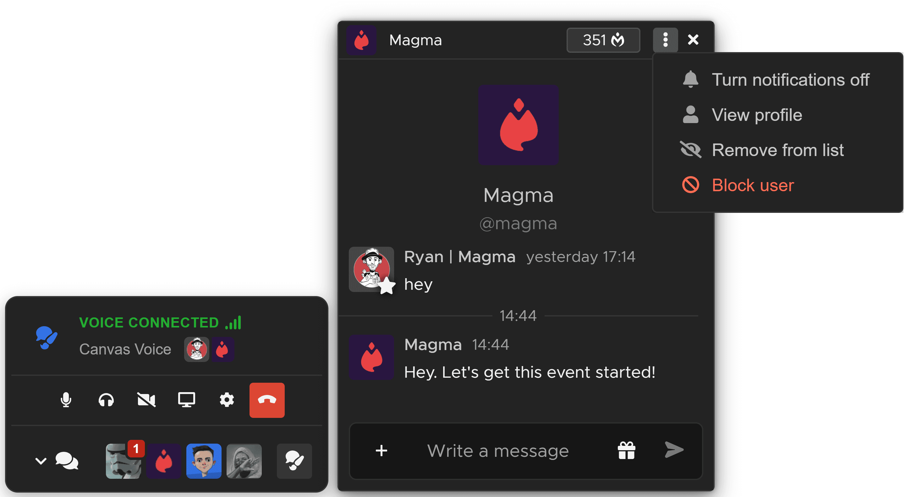 You will notice a new chat bar when you are in the dashboard, and also on the canvas. The canvas chat bar groups DMs, on-canvas chat, and voice calls, and can be moved to any corner of your UI to best suit your layout. You can find out more about chatting wth others in this guide.