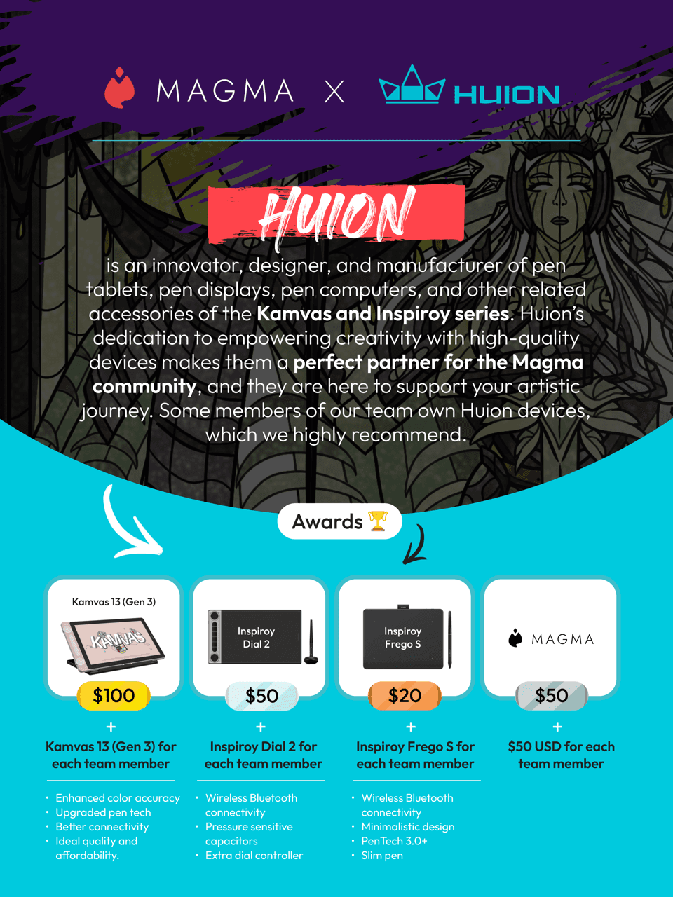 1st Place: $100 USD in Mags and a Kamvas 13 (Gen 3) for each team member