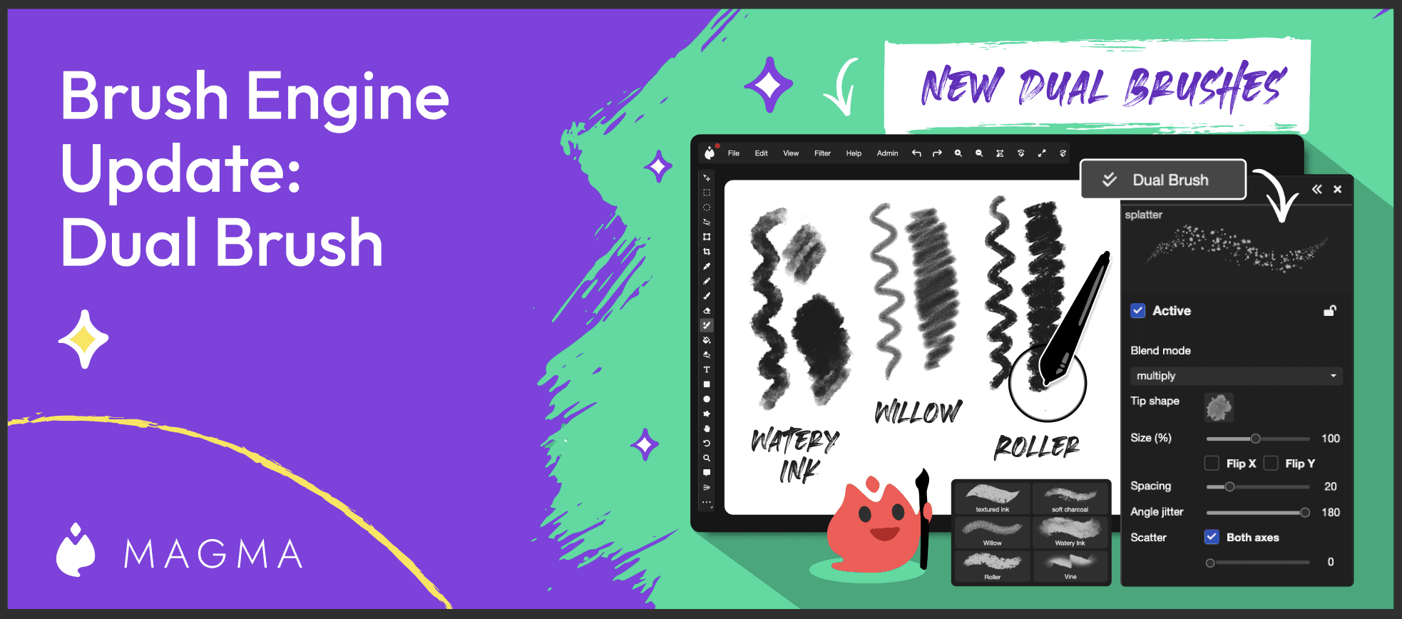 In this update, we bring you some new brushes as well as the Dual Brush setting.